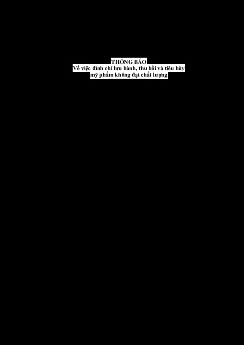 | Tiêu đề văn bản | Về việc đình chỉ lưu hành, thu hồi và tiêu hủy mỹ phẩm không đạt chất lượng | ||
