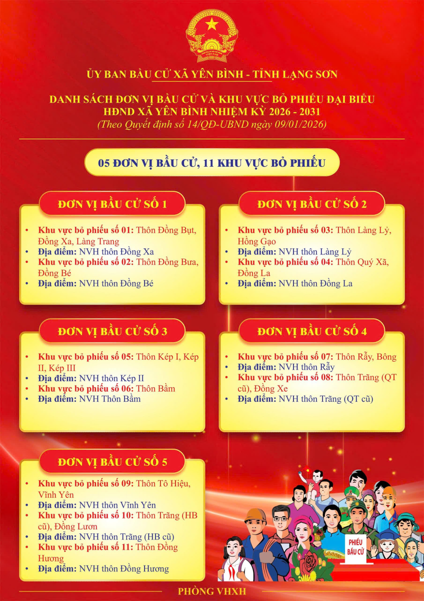 XÃ YÊN BÌNH: PHÊ CHUẨN SỐ LƯỢNG KHU VỰC BỎ PHIẾU BẦU CỬ ĐẠI BIỂU QUỐC HỘI KHÓA XVI VÀ BẦU CỬ ĐẠI BIỂU HĐND CÁC CẤP NHIỆM KỲ 2026-2031 TRÊN ĐỊA BÀN XÃ YÊN BÌNH