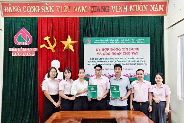 Ngày 15/9/2025, Phòng giao dịch NHCSXH Hữu Lũng đã triển khai giải ngân cho 02 khách hàng đầu tiên. Tổng số tiền được duyệt cho 02 khách hàng là 802 triệu đồng, để trang trải học phí, chi phí sinh hoạt và chi phí học tập khác trong suốt thời gian các em sinh viên theo học tại trường, trong đó lần giải ngân đầu tiên của năm học 2025-2026 là 155 triệu đồng. Đây là 02 khách hàng vay vốn đầu tiên trên địa bàn tỉnh Lạng Sơn sau khi Quyết định số 29/2025/QĐ-TTg có hiệu lực từ ngày 28/8/2025.