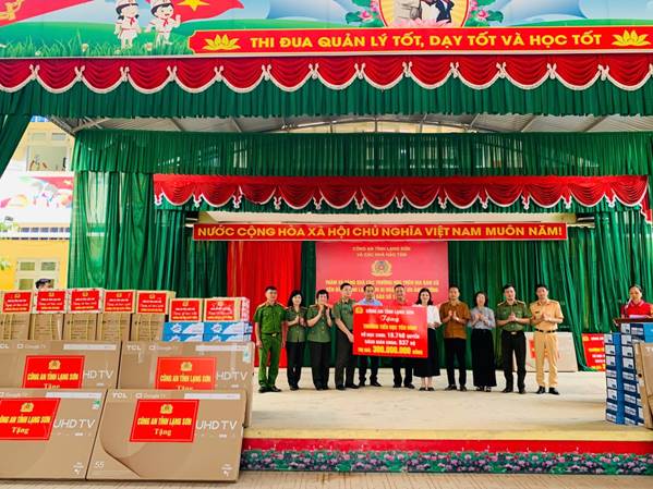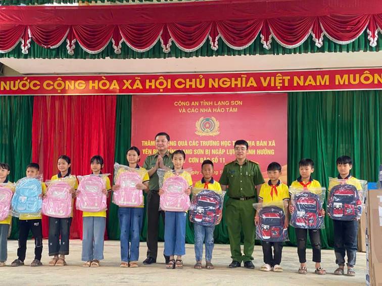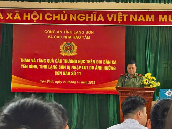 Sáng ngày 21/10/2025, Công an tỉnh Lạng Sơn phối hợp cùng các nhà hảo tâm tổ chức thăm, tặng quà cho các trường học tại xã Yên Bình do ảnh hưởng bởi bão số 11 gây ra.