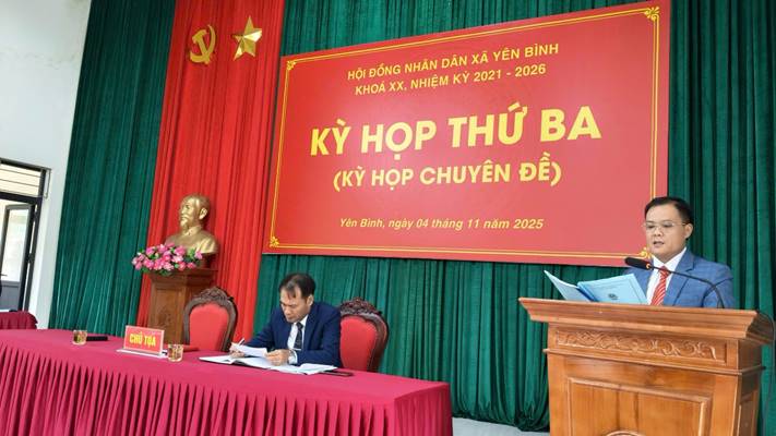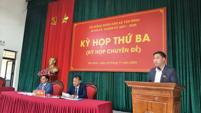 Sáng ngày 04/11/2025, Hội đồng nhân dân xã Yên Bình khóa XX, nhiệm kỳ 2021 - 2026 đã tổ chức Kỳ họp thứ Ba (kỳ họp chuyên đề) nhằm xem xét, thảo luận và quyết nghị một số nội dung quan trọng liên quan đến phát triển kinh tế - xã hội, kế hoạch đầu tư công và kế hoạch vốn thực hiện các chương trình mục tiêu quốc gia, kinh phí bổ sung ngân sách phục vụ chuyển đổi số năm 2025. Đồng chí Vũ Văn Thịnh Bí thư Đảng uỷ, Chủ tịch HĐND xã chủ trì kỳ họp, tham dự kỳ họp có các đồng chí Thường trực Đảng ủy, lãnh đạo UBND, Ủy ban MTTQ, các ban, ngành, đoàn thể xã và các đại biểu HĐND xã khóa XX, nhiệm kỳ 2021 - 2026.