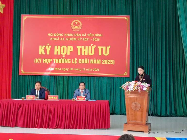 Kỳ họp thứ Tư (kỳ họp thường lệ cuối năm 2025) HĐND xã Yên Bình khóa XX, nhiệm kỳ 2021 - 2026 đã diễn ra thành công tốt đẹp, đảm bảo đúng quy định, nội dung, chương trình và đạt được sự đồng thuận cao của các đại biểu.
