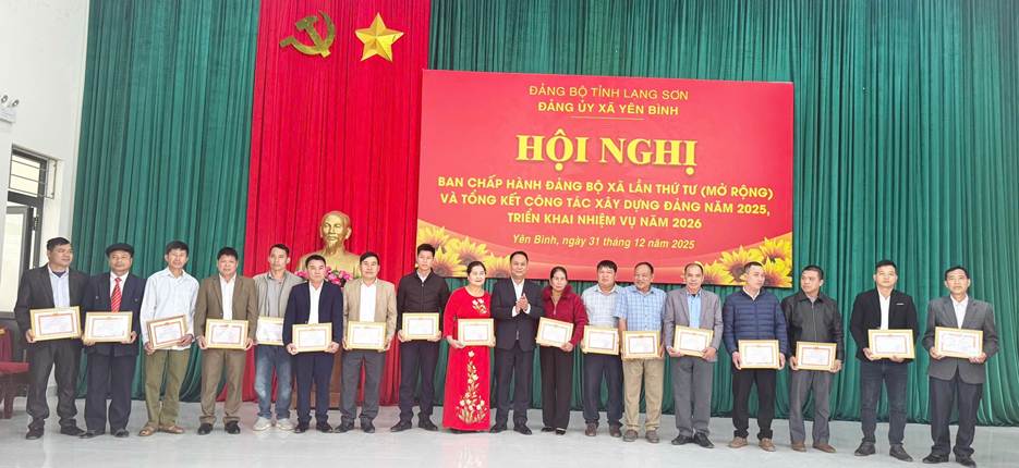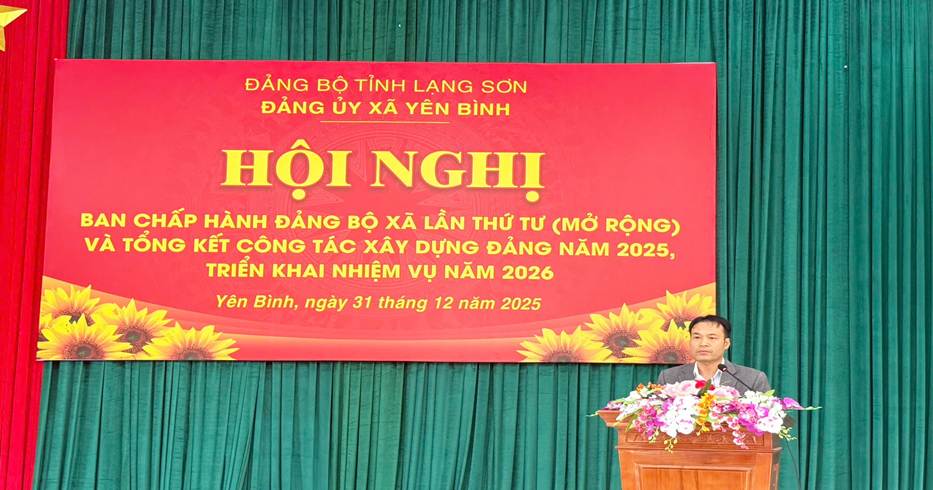Sáng ngày 31/12/2025, tại Nhà Văn hóa xã, Ban Chấp hành Đảng bộ xã Yên Bình tổ chức Hội nghị lần thứ tư (mở rộng), tổng kết công tác xây dựng Đảng năm 2025, triển khai nhiệm vụ năm 2026. Dự và chỉ đạo Hội nghị có đại biểu Ban Nội chính Tỉnh uỷ. Đồng chí Vũ Văn Thịnh - Bí thư Đảng uỷ, Chủ tịch HĐND xã chủ trì Hội nghị; đồng chí Nguyễn Mạnh Dũng - Phó Bí thư Thường trực Đảng uỷ, đồng chí Trần Hoài Trang - Phó Bí thư Đảng uỷ, Chủ tịch UBND xã đồng chủ trì Hội nghị. Tham dự Hội nghị có các đồng chí Ủy viên Ban Chấp hành Đảng bộ xã, lãnh đạo các cơ quan tham mưu, giúp việc Đảng ủy, Ủy viên Ủy ban kiểm tra Đảng ủy, Bí thư các Chi bộ trực thuộc, trưởng thôn trên địa bàn xã, các đồng chí đảng viên được khen thưởng.