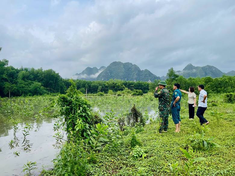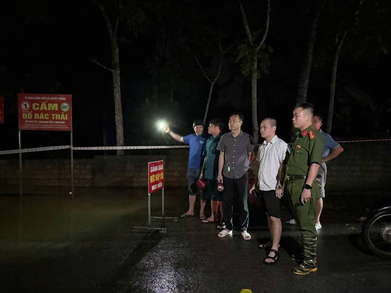 Đồng chí Vũ Văn Thịnh Bí thư Đảng ủy cùng các đồng chí trong BCH phognf thủ dân sự xã kiểm tra công tác phòng chống lụt bão