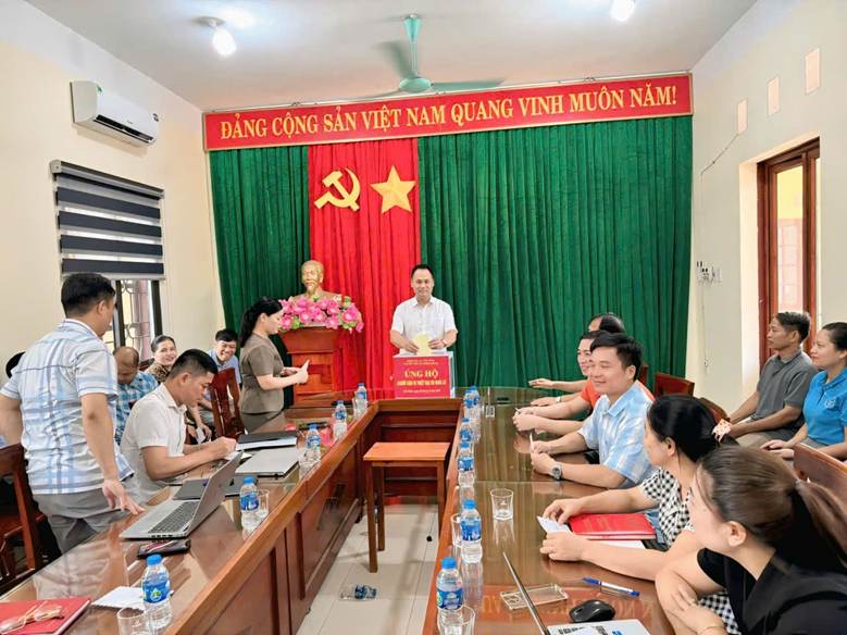 Ảnh: Cán bộ công chức, công chức, đảng viên, nhân viên ủng hộ người dân bị thiệt hại do mưa lũ