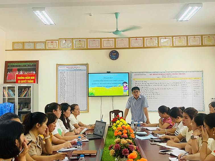 Ngày 06/9/2025, tại hội trường Trường Mầm non Quyết Thắng, UBND xã tổ chức tập huấn, bồi dưỡng hướng dẫn nâng cao năng lực quản lý tổ chức hoạt động giáo dục trong cơ sở GDMN độc lập và tổ chức các hoạt động giáo dục cảm xúc xã hội cho trẻ mầm non trong thực hiện Chương trình GDMN. Dự và chỉ đạo hội nghị có ông Long Văn Lâm, Trưởng phòng Văn hóa – Xã hội xã, tham gia tập huấn có các cán bộ quản lý, giáo viên các đơn vị trường mầm non trên địa bàn xã.