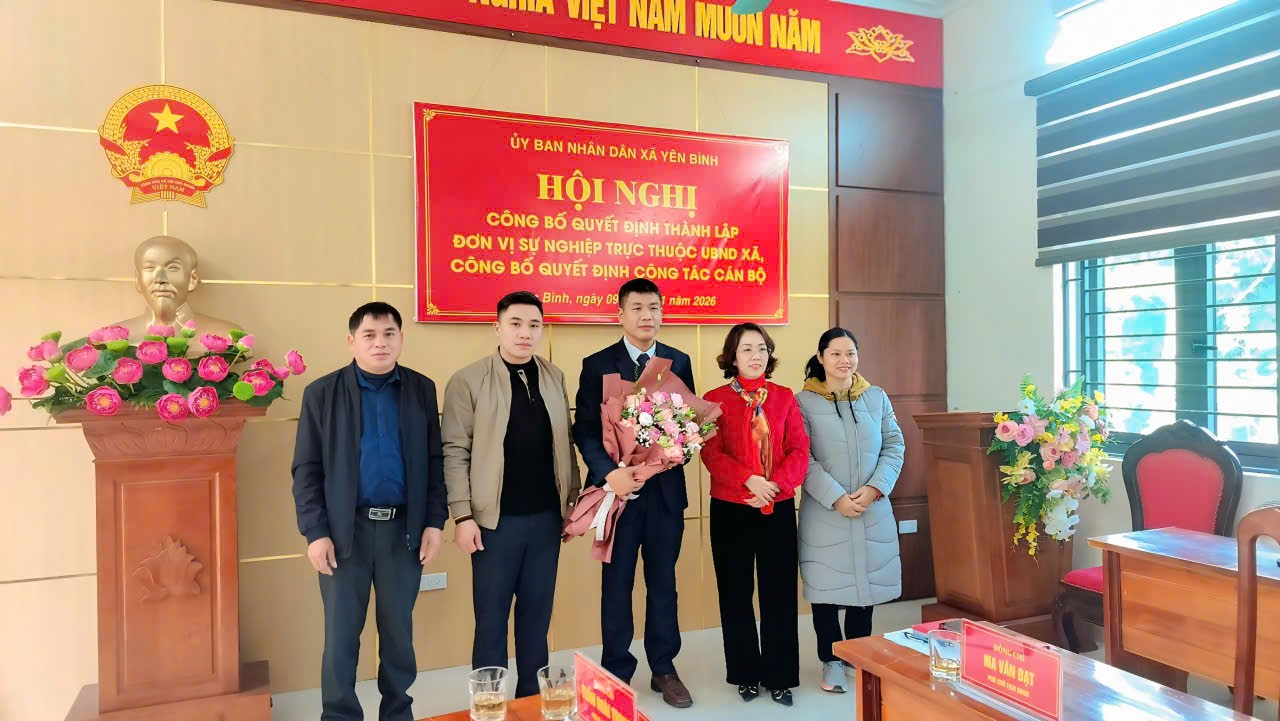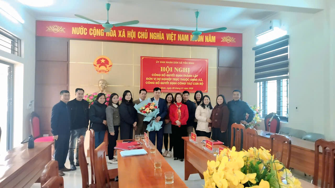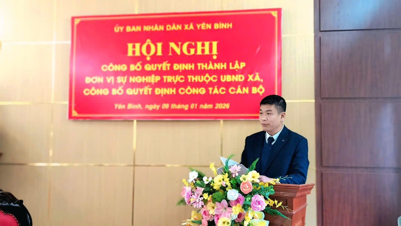 Ngày 09/01/2026, xã Yên Bình tổ chức Hội nghị công bố quyết định thành lập đơn vị sự nghiệp trực thuộc UBND xã và công bố quyết định công tác cán bộ. Chủ trì Hội nghị đồng chí Trần Hoài Trang, Chủ tịch UBND xã; Dự Hội nghị còn có các đông chí lãnh đạo UBND xã; các đồng chí lãnh đạo các phòng chuyên môn và toàn thể cán bộ, viên chức Trung tâm dịch vụ công ích, Trạm y tế xã.