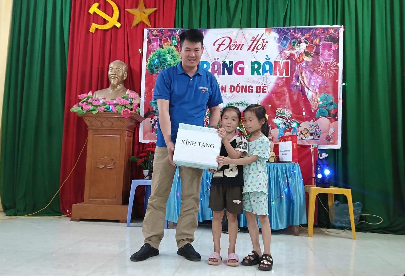 Đồng chí Lương Anh Tuấn, phó Chủ tịch Ủy ban MTTQ Việt Nam – Bí thư Đoàn thanh niên xã dự và chúc Tết Trung thu các cháu thiếu nhi thôn Đồng Bé