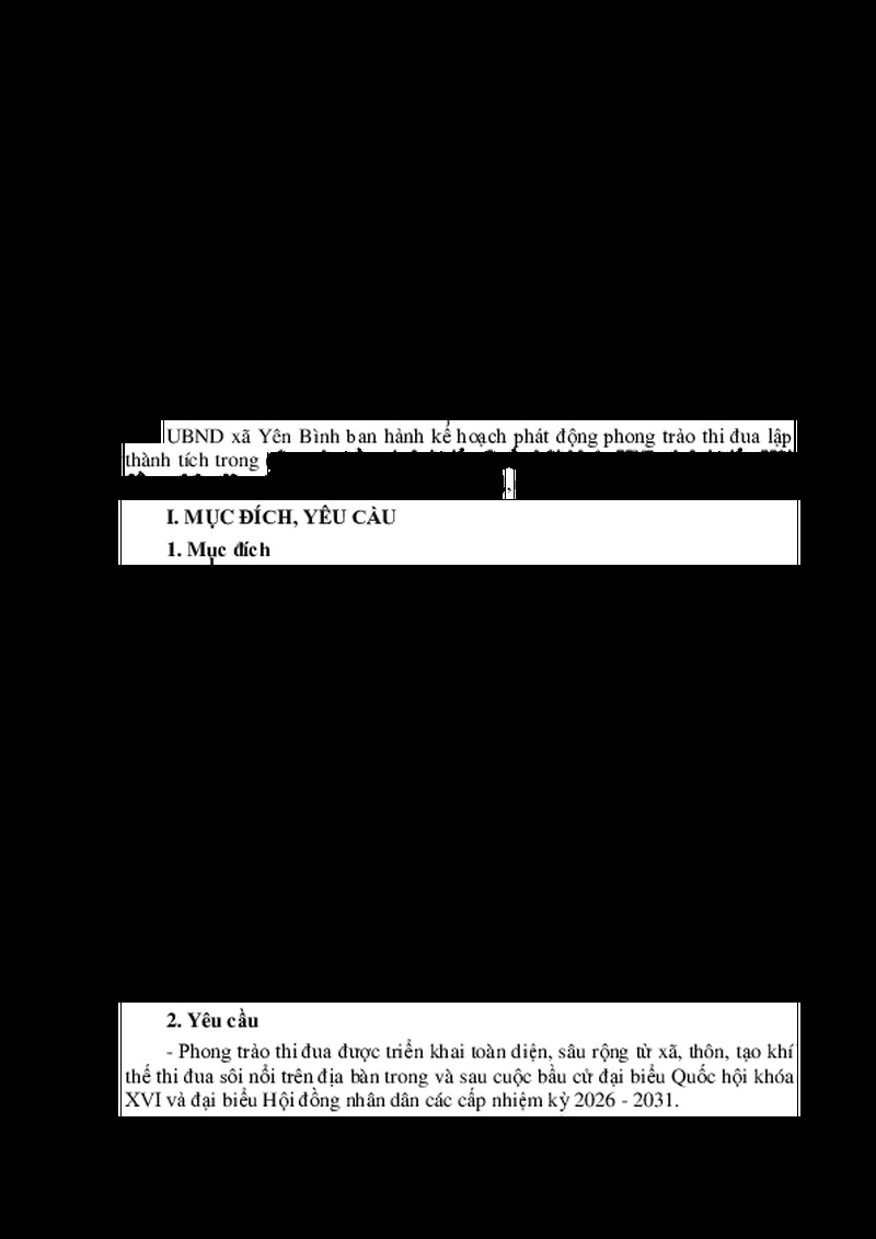 | Tiêu đề văn bản | Kế hoạch Phát động phong trào thi đua lập thành tích trong công tác bầu cử đại biểu Quốc hội khóa XVI và đại biểu Hội đồng nhân dân các cấp nhiệm kỳ 2026 - 2031 | ||